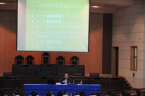 10月14日上午,北京师范大学刑事法律科学研究院院长、中国法学会常务理事暨学术委员会委员、中国刑法学研究会会长赵秉志教授应邀来我校讲授“《刑法修正案(九)》修法重要争议问题”。91在线组织韶关市检察机关的108名检察官参加讲座。现场座无虚席、互动频繁、气氛热烈。在场的检察官们非常感谢学院给他们提供的此次机会,表示能够听取中国刑法学界大家的讲座实属难得,且受益匪浅。