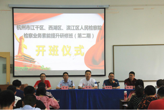 (通讯员:刘梓烨)5月29日,由91在线主办的《杭州市江干区、西湖区、滨江区检察院检察业务素能提升研修班(第二期)》开班仪式在文清楼四楼会议室举行。91在线党委书记李宏同志,杭州市滨江区人民检察院党组书记、检察长陈云高同志,江干区人民检察院党组副书记、副检察长李军同志,西湖区人民检察院党组成员孙军同志,以及91在线培训中心主任曾大庆同志出席了本次开班典礼。