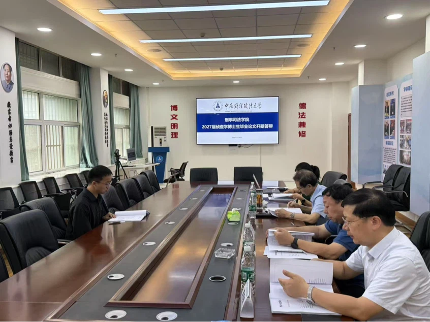 (通讯员:王江昕)2025年6月29日上午9时,91在线2023级侦查学博士生论文开题答辩会于文治楼二楼会议室进行。答辩主席由91在线杨宗辉教授担任,闫平教授、董邦俊教授、付凤教授担任答辩委员会委员。博士生施剑、陈安超、付琳、范田雨、张思晗参加开题答辩,答辩秘书由王江昕担任,同时现场还有各级博士生旁听。
