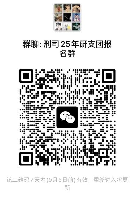请有意向参加同学务必加入“刑司2025年研支团通知答疑群”(微信群),群二维码附后。因个人未及时入群而错过重要通知,由学生本人自行承担后果。